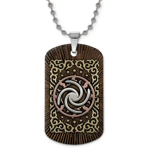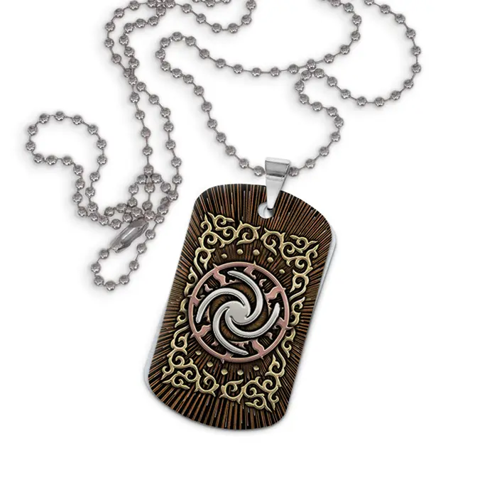 Двухсторонний сувенирный кулон-жетон из алюминиевого сплава с цветным изображением.