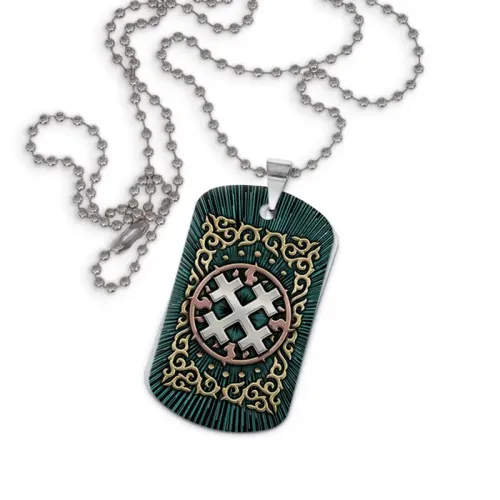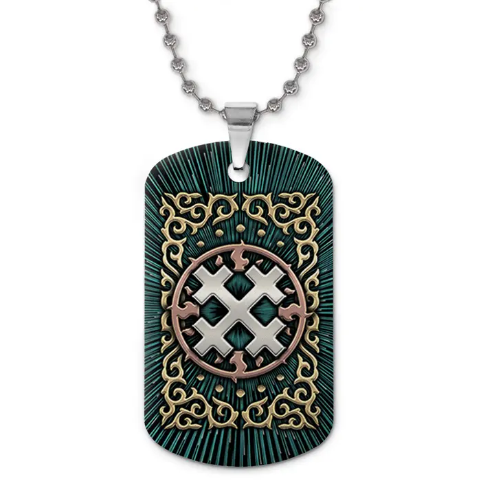 Двухсторонний кулон-жетон из алюминиевого сплава с цветным изображением символа.
