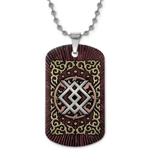 Кулон-жетон с изображением славянского символа. Изготовлен из алюминиевого сплава, имеет двухсторонний цветной дизайн.