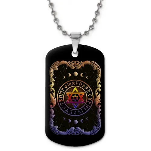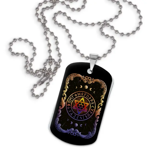 Сувенирный кулон-жетон с двусторонним изображением Звезды Давида, выполненный из алюминиевого сплава.