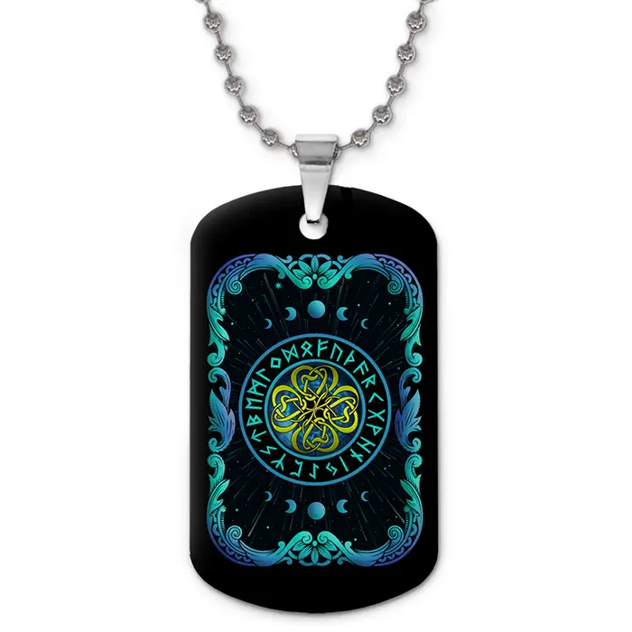 Кулон-жетон с изображением четырёхлистного клевера. Изготовлен из алюминиевого сплава, имеет двухсторонний цветной дизайн.