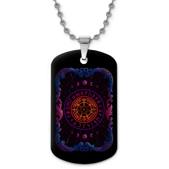 Двухсторонний кулон-жетон из алюминиевого сплава с цветным изображением.