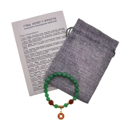 Размеры и комплектация: Диаметр бусин 8 мм, внутренний диаметр браслета около 5.5 см. В комплекте: прозрачный пакет с еврослотом, джутовый мешочек, буклет с описанием камней.