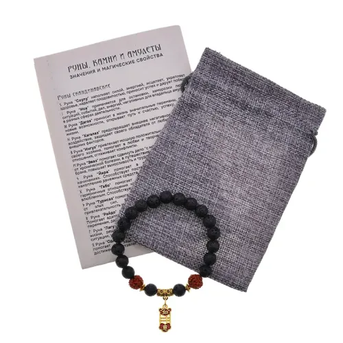 Размеры и комплектация: Диаметр бусин 8 мм, внутренний диаметр браслета около 5,5 см. В упаковке: прозрачный пакет с еврослотом, джутовый мешочек, буклет.