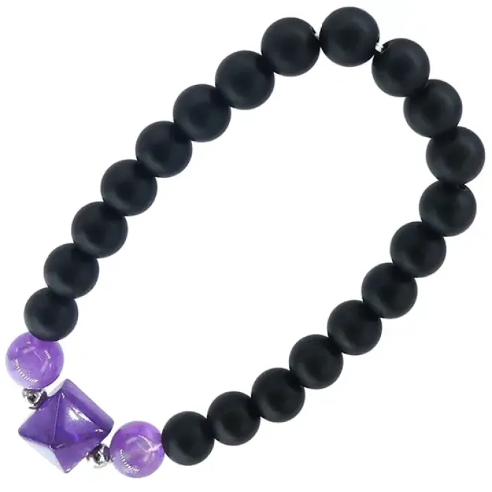 Браслет диаметром 8 мм из натуральных камней шунгита и аметиста.