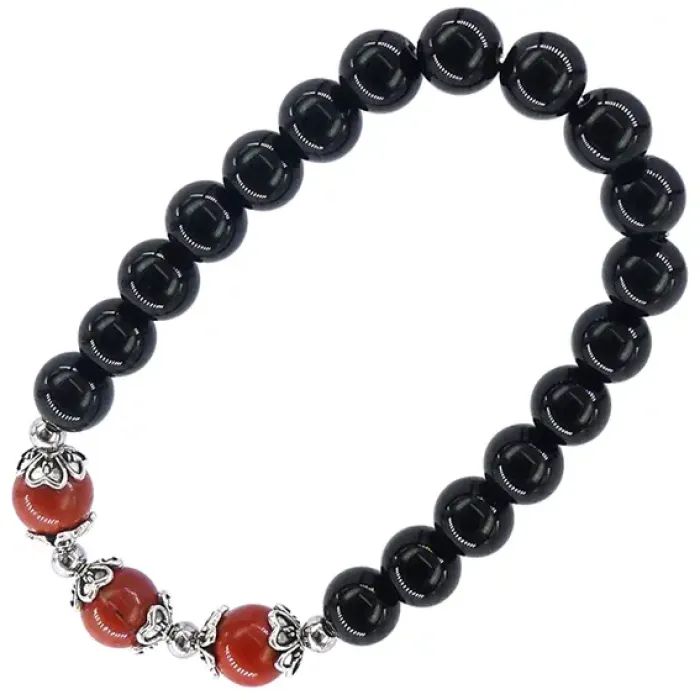 Браслет из натуральных камней чёрного агата и яшмы с бусинами диаметром 8 мм.
