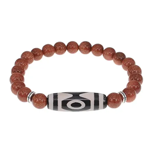 Браслет с 3-глазой бусиной Дзи и синт. камнем Коричневый авантюрин BSDS8-01-01