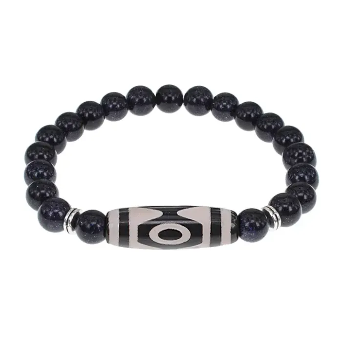 Браслет с 3-глазой бусиной Дзи и синт. камнем Синий авантюрин BSDS8-01-02