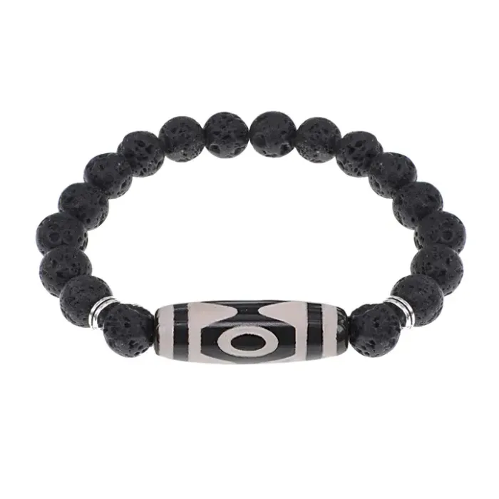 Стрейч-браслет из натурального камня лавы с тибетской бусиной Дзи из агата.