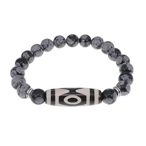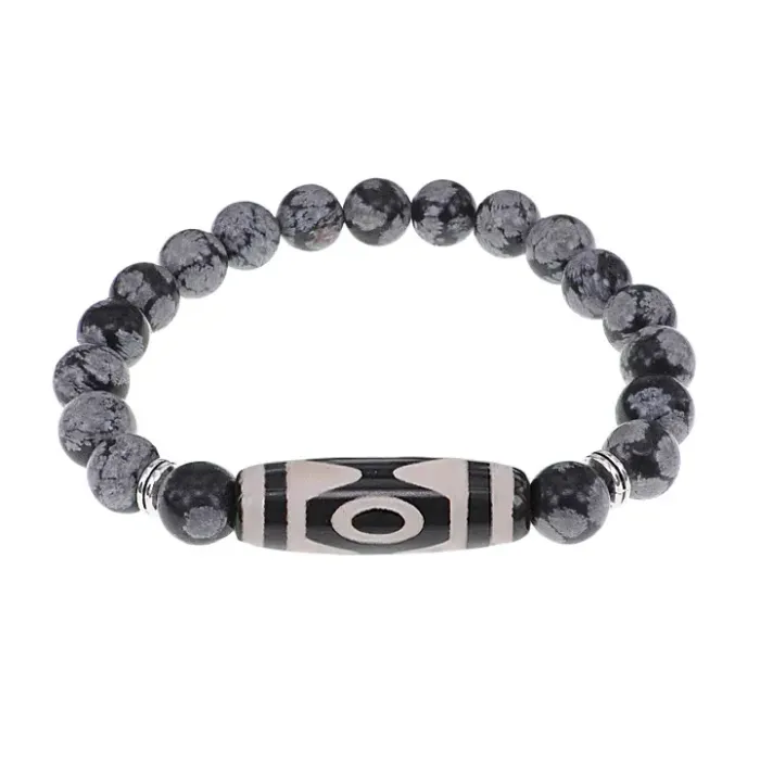 Браслет с 3-глазой бусиной Дзи и нат.камнем Снежный обсидиан