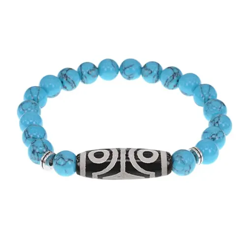 Браслет с 4-глазой бусиной Дзи и синт.камнем Бирюза BSDS8-02-05