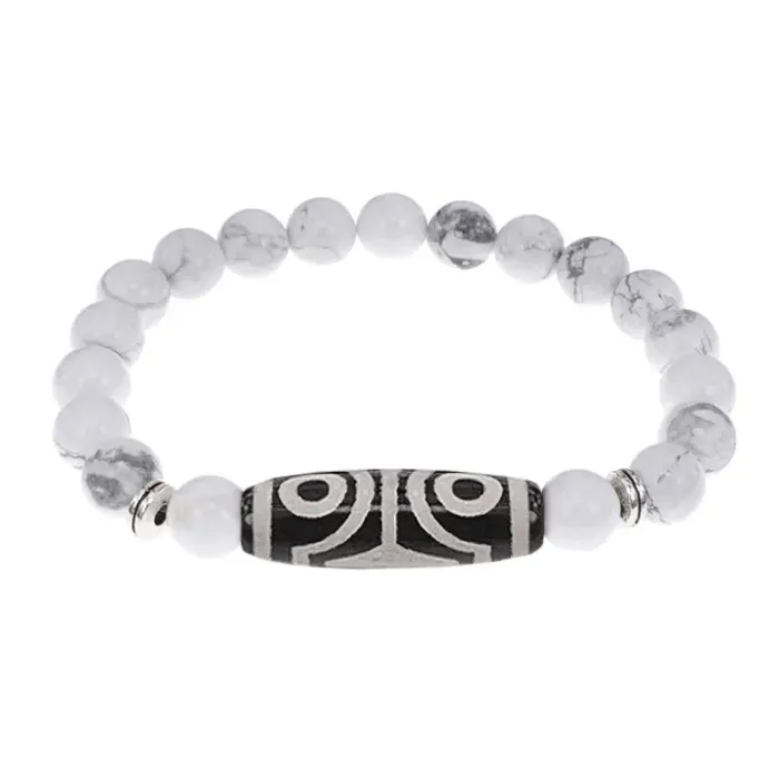 Стрейч-браслет из натурального камня кахолонг с тибетской бусиной Дзи из агата.