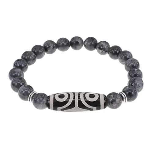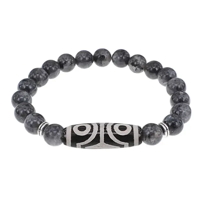 Стрейч-браслет из натурального камня лабрадор с тибетской бусиной Дзи из агата.