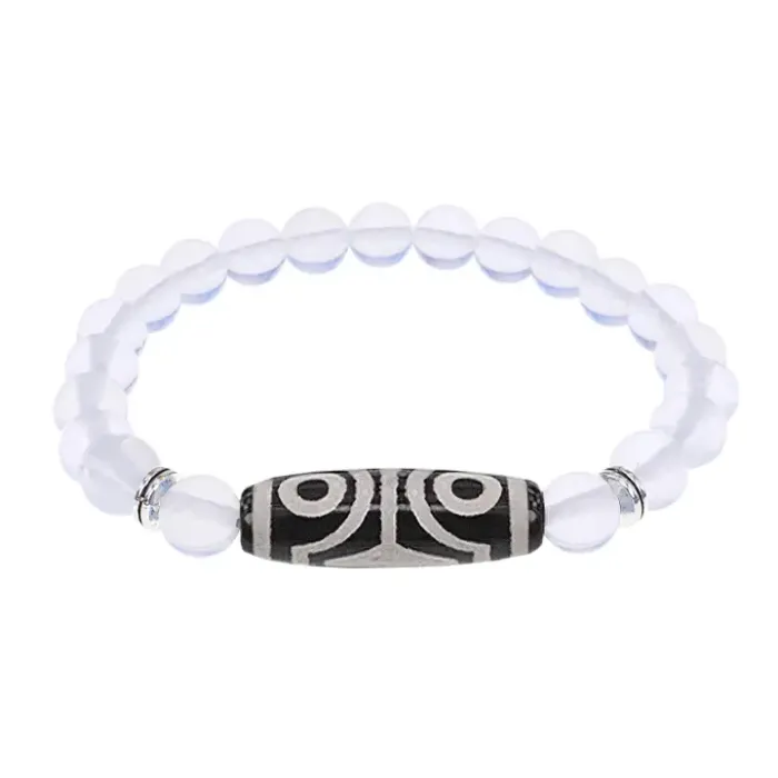 Стрейч-браслет из синтетического камня с тибетской бусиной Дзи из натурального агата.
