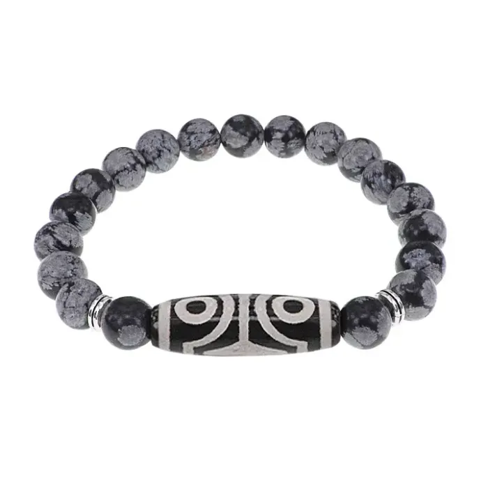 Браслет с 4-глазой бусиной Дзи и нат.камнем Снежный обсидиан BSDS8-02-14
