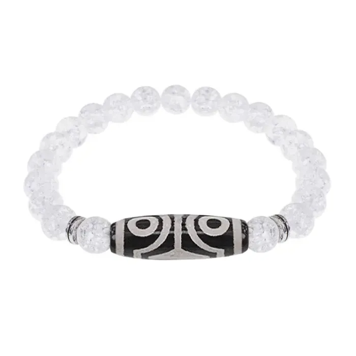 Стрейч-браслет с тибетской бусиной Дзи из агата и синтетическим камнем Сахарный кварц.