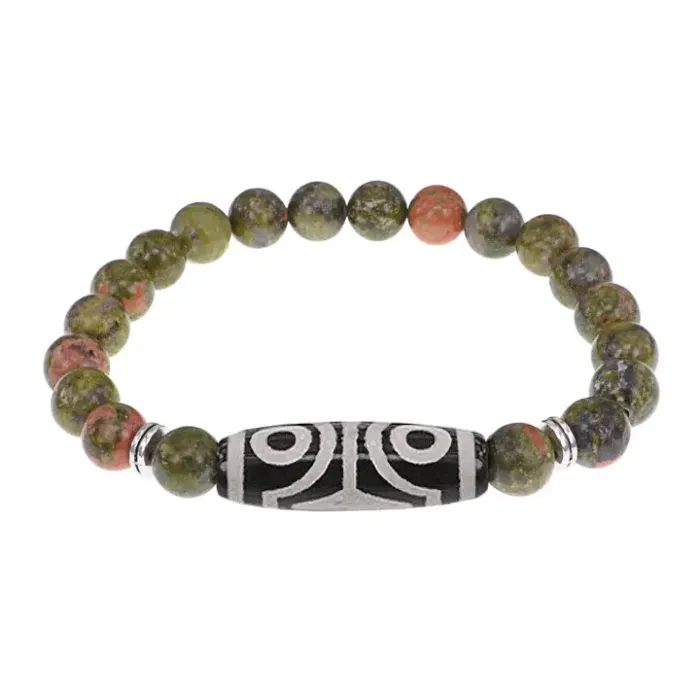 Браслет с 4-глазой бусиной Дзи и нат.камнем Унакит BSDS8-02-20