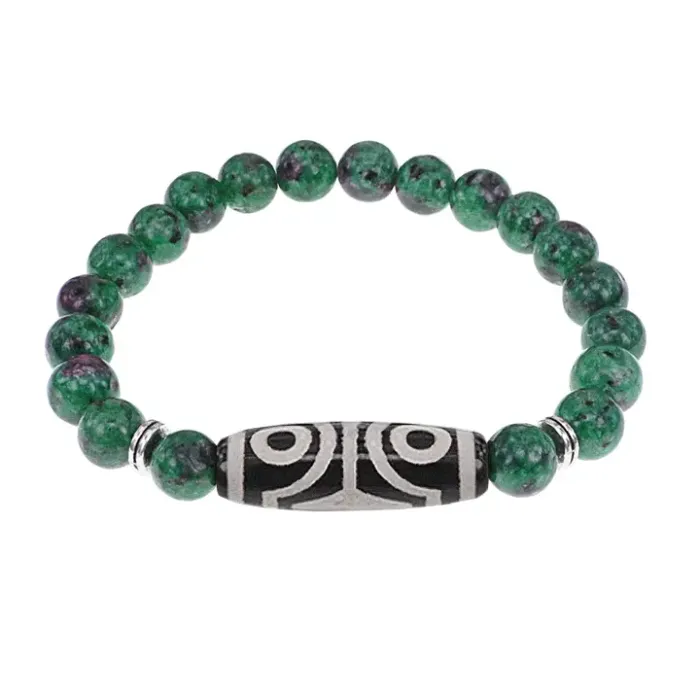 Браслет с 4-глазой бусиной Дзи и синт.камнем Цоизит BSDS8-02-22