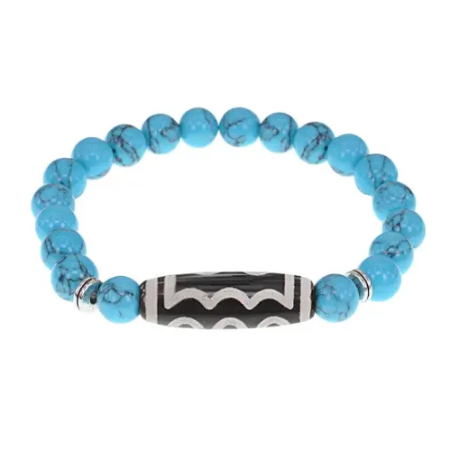 Стрейч-браслет из синтетического камня с тибетской бусиной Дзи из натурального агата.