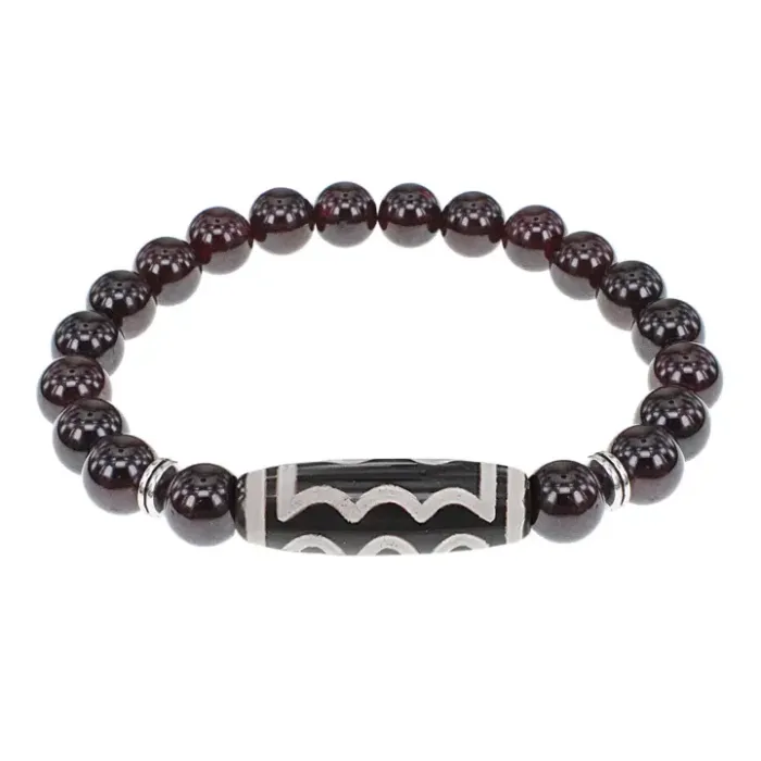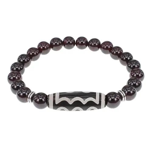 Браслет с 5-глазой бусиной Дзи и нат.камнем Гранат BSDS8-03-06