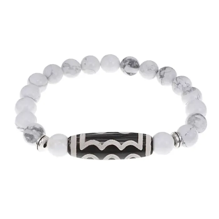 Стрейч-браслет из натурального камня кахолонг с тибетской бусиной Дзи из агата.