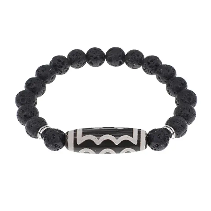 Стрейч-браслет из натурального камня лавы с тибетской бусиной Дзи из агата.