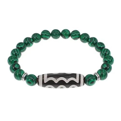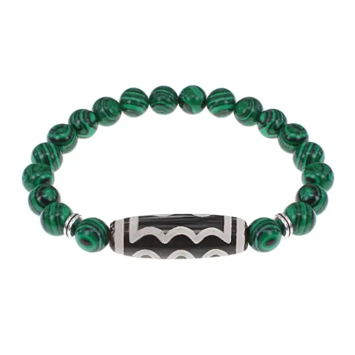 Браслет с 5-глазой бусиной Дзи и синт.камнем Малахит BSDS8-03-12
