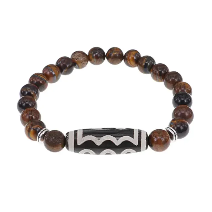 Стрейч-браслет из натурального камня с тибетской бусиной Дзи из агата.