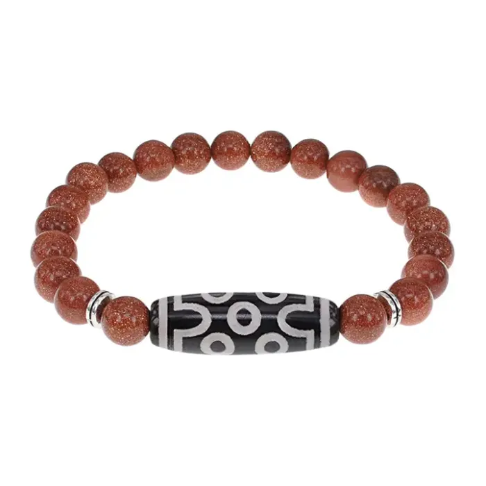 Браслет с 7-глазой бусиной Дзи и синт. камнем Коричневый авантюрин BSDS8-04-01