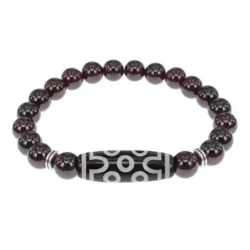 Стрейч-браслет из натурального камня гранат с тибетской бусиной Дзи из агата.
