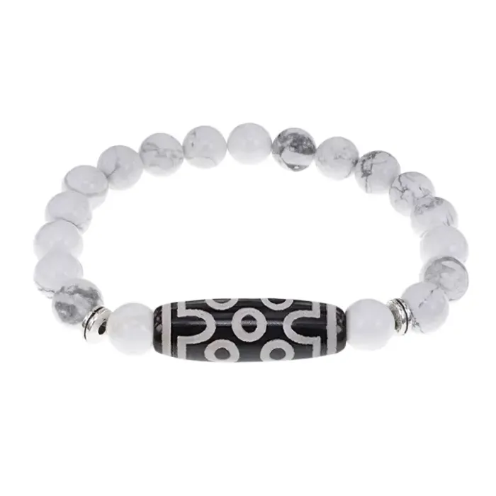 Стрейч-браслет из натурального камня кахолонг с тибетской бусиной Дзи из агата.