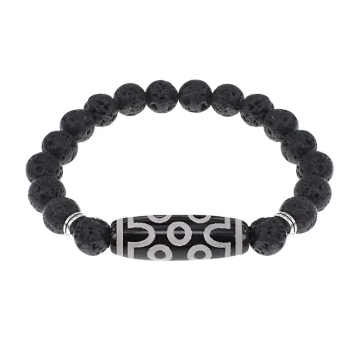 Стрейч-браслет из натурального камня лава (базальт) с тибетской бусиной Дзи из агата.