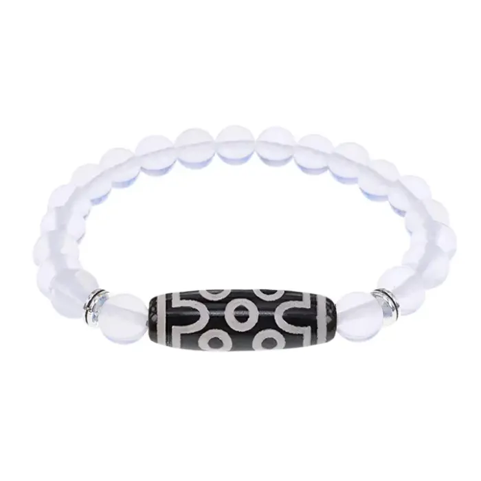 Браслет с 7-глазой бусиной Дзи и синт.камнем Лунный камень BSDS8-04-11