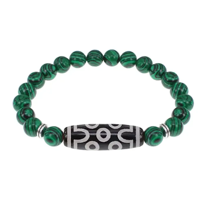 Браслет с 7-глазой бусиной Дзи и синт.камнем Малахит BSDS8-04-12