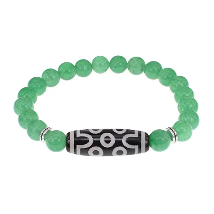 Стрейч-браслет из натурального камня нефрит с тибетской бусиной Дзи из агата.