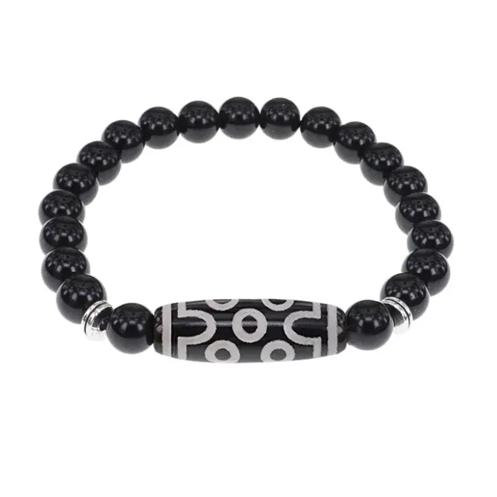 Стрейч-браслет из натурального чёрного агата с тибетской бусиной Дзи.