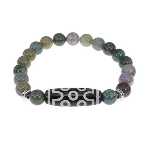Стрейч-браслет из натуральной яшмы с тибетской бусиной Дзи из агата.