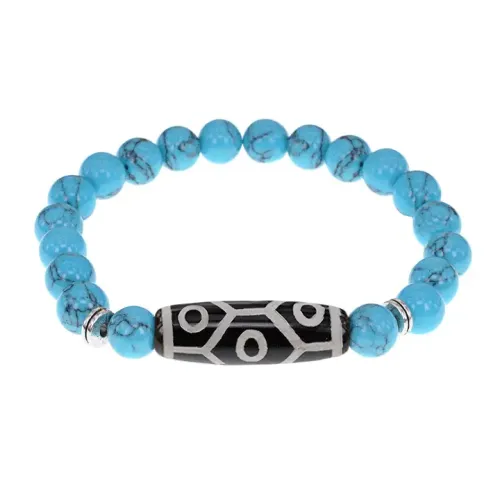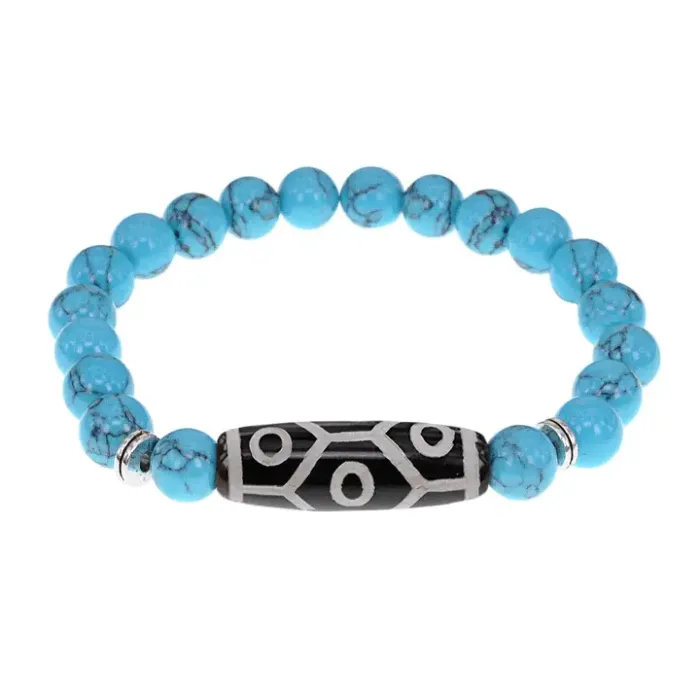 Браслет с 9-глазой бусиной Дзи и синт.камнем Бирюза BSDS8-05-05