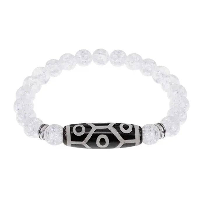 Стрейч-браслет из синтетического камня с тибетской бусиной Дзи из натурального агата.