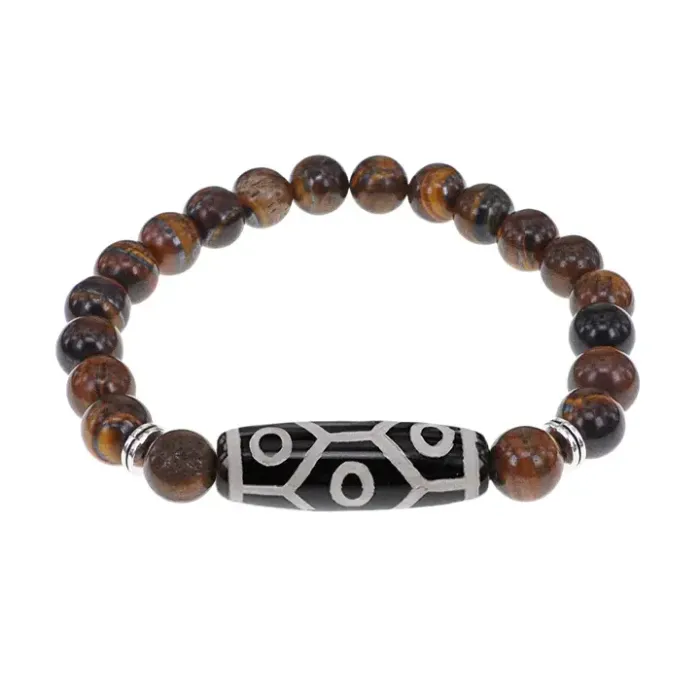 Браслет с 9-глазой бусиной Дзи и нат.камнем Тигровый глаз BSDS8-05-19