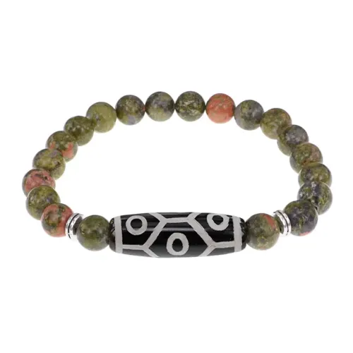 Браслет с 9-глазой бусиной Дзи и нат.камнем Унакит BSDS8-05-20