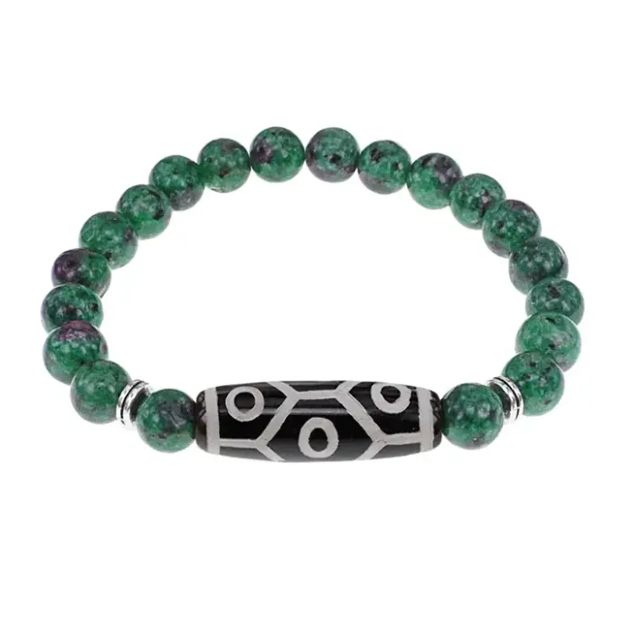 Браслет с 9-глазой бусиной Дзи и синт.камнем Цоизит BSDS8-05-22