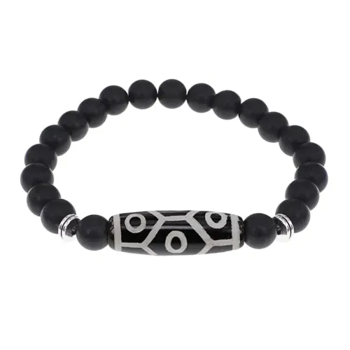 Стрейч-браслет из синтетического камня с тибетской бусиной Дзи из натурального агата.
