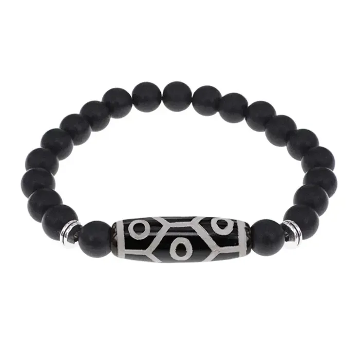 Браслет с 9-глазой бусиной Дзи и синт.камнем Шунгит BSDS8-05-24