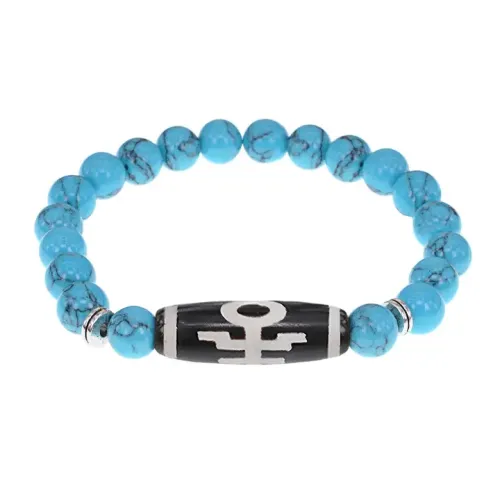 Браслет с бусиной Дзи Аристократ и синт.камнем Бирюза BSDS8-06-05
