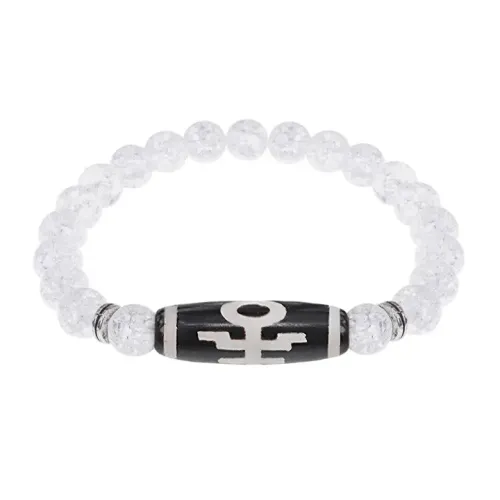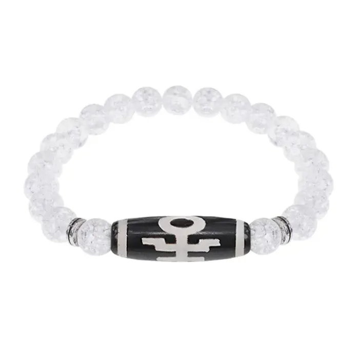 Стрейч-браслет из синтетического камня с тибетской бусиной Дзи из натурального агата.