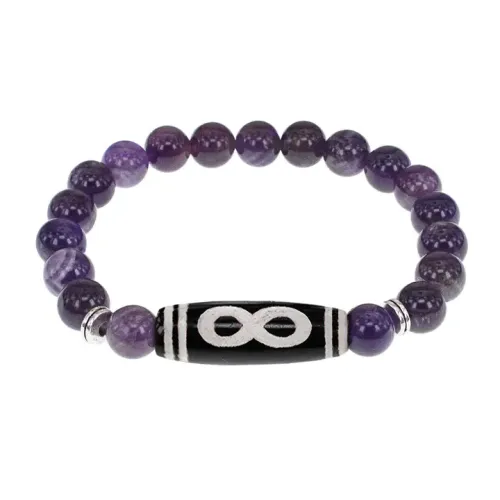 Браслет с бусиной Дзи Бесконечность и нат.камнем Аметист BSDS8-07-03