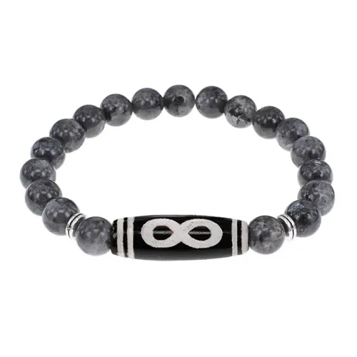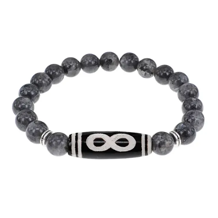 Браслет с бусиной Дзи Бесконечность и нат.камнем Лабрадор BSDS8-07-08