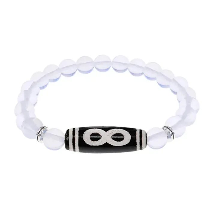 Браслет с бусиной Дзи Бесконечность и синт.камнем Лунный камень BSDS8-07-11
