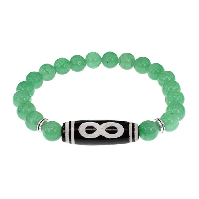 Браслет с бусиной Дзи Бесконечность и нат.камнем Нефрит BSDS8-07-13